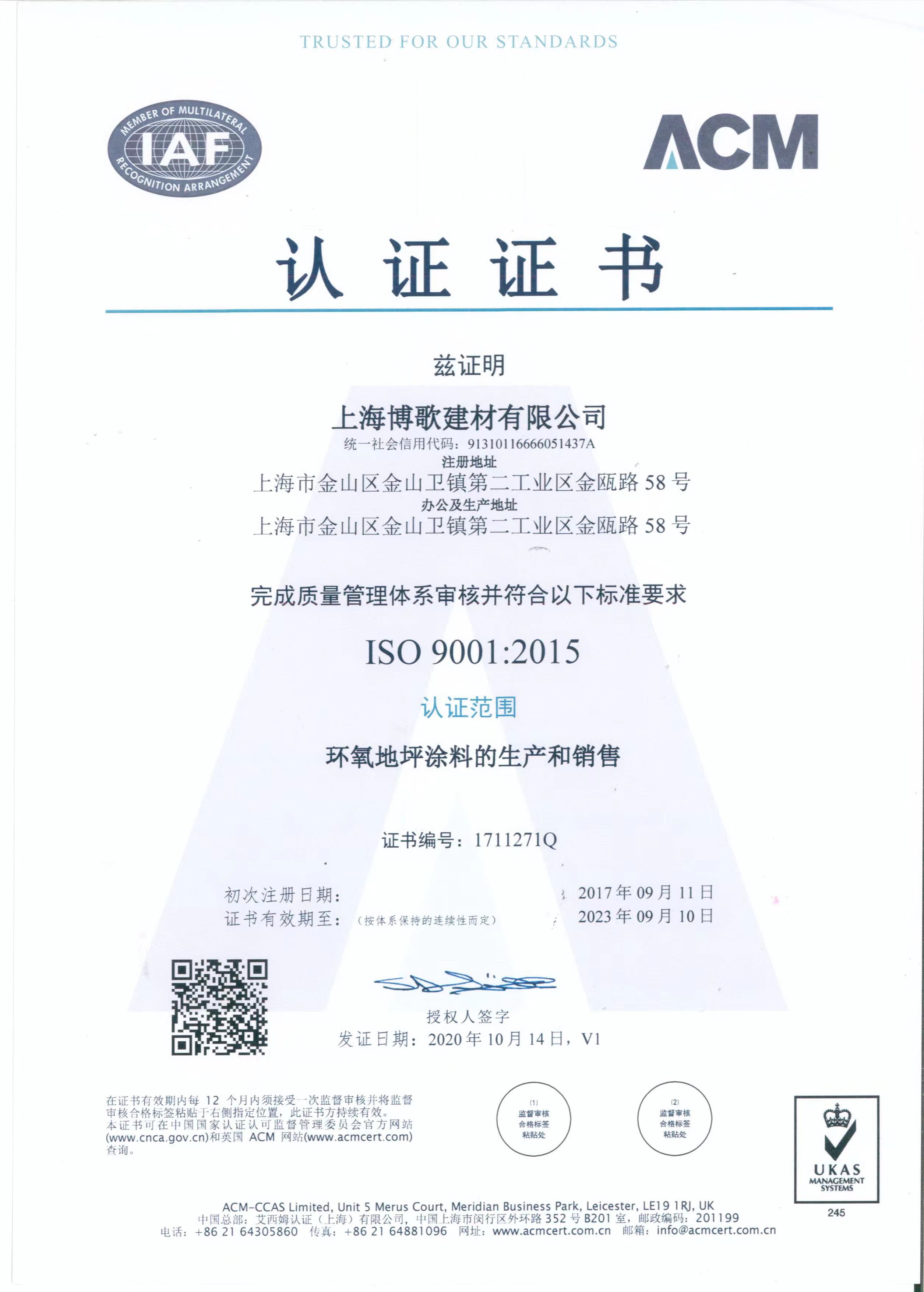 上海博歌建材股份有限公司/上海博歌高科技發(fā)展有限公司是一家研究、制造聚合物應(yīng)用材料的企業(yè),企業(yè)匯聚了業(yè)界內(nèi)高學(xué)歷且經(jīng)驗(yàn)豐富的化學(xué)、材料及表面處理技術(shù)方面的專家,致力于工業(yè)及商用環(huán)氧、混凝土密封固化劑、聚氨酯等地坪材料、無震動防滑坡道材料、彩色防滑路面材料、運(yùn)動場地地坪材料及自流平水泥地坪材料的制造及應(yīng)用技術(shù)的開發(fā)研究。在企業(yè)經(jīng)營方針的指導(dǎo)下,上海博歌建材有限公司嚴(yán)格遵循ISO9001質(zhì)量管理體系,為工業(yè)、市政、學(xué)校、醫(yī)院、商業(yè)等行業(yè)地坪工程領(lǐng)域提供了優(yōu)質(zhì)的產(chǎn)品及優(yōu)良的服務(wù)。