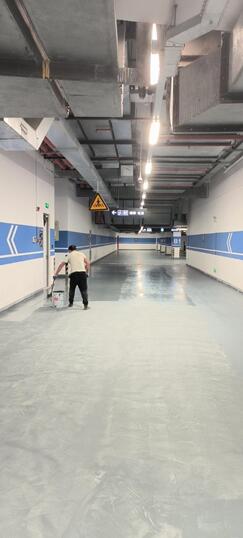 該工程在水泥自流平基面上施工水性聚氨酯地坪
